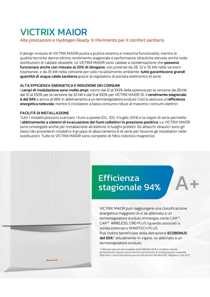 dal 10 al 100% per la versione da 32 kW e dal 9 al 100% per VICTRIX MAIOR 35. Il rendimento stagionale