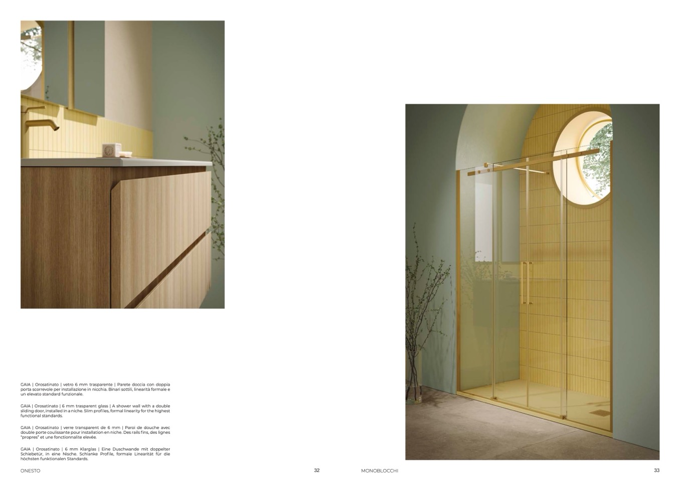 GAIA | Orosatinato | vetro 6 mm trasparente | Parete doccia con doppia