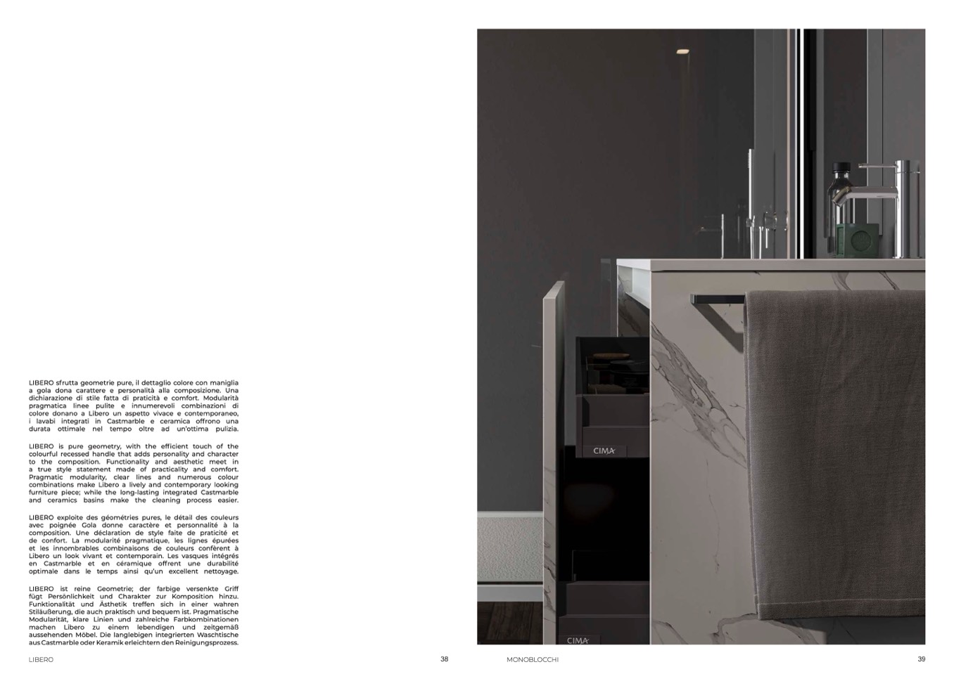 LIBERO sfrutta geometrie pure, il dettaglio colore con maniglia