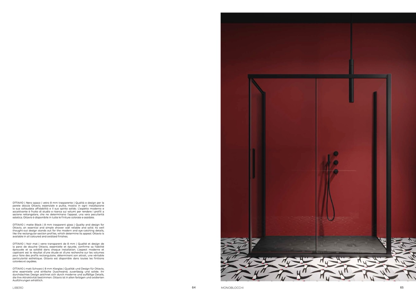 parete doccia Ottavio, essenziale e pulita, mostra in ogni installazione