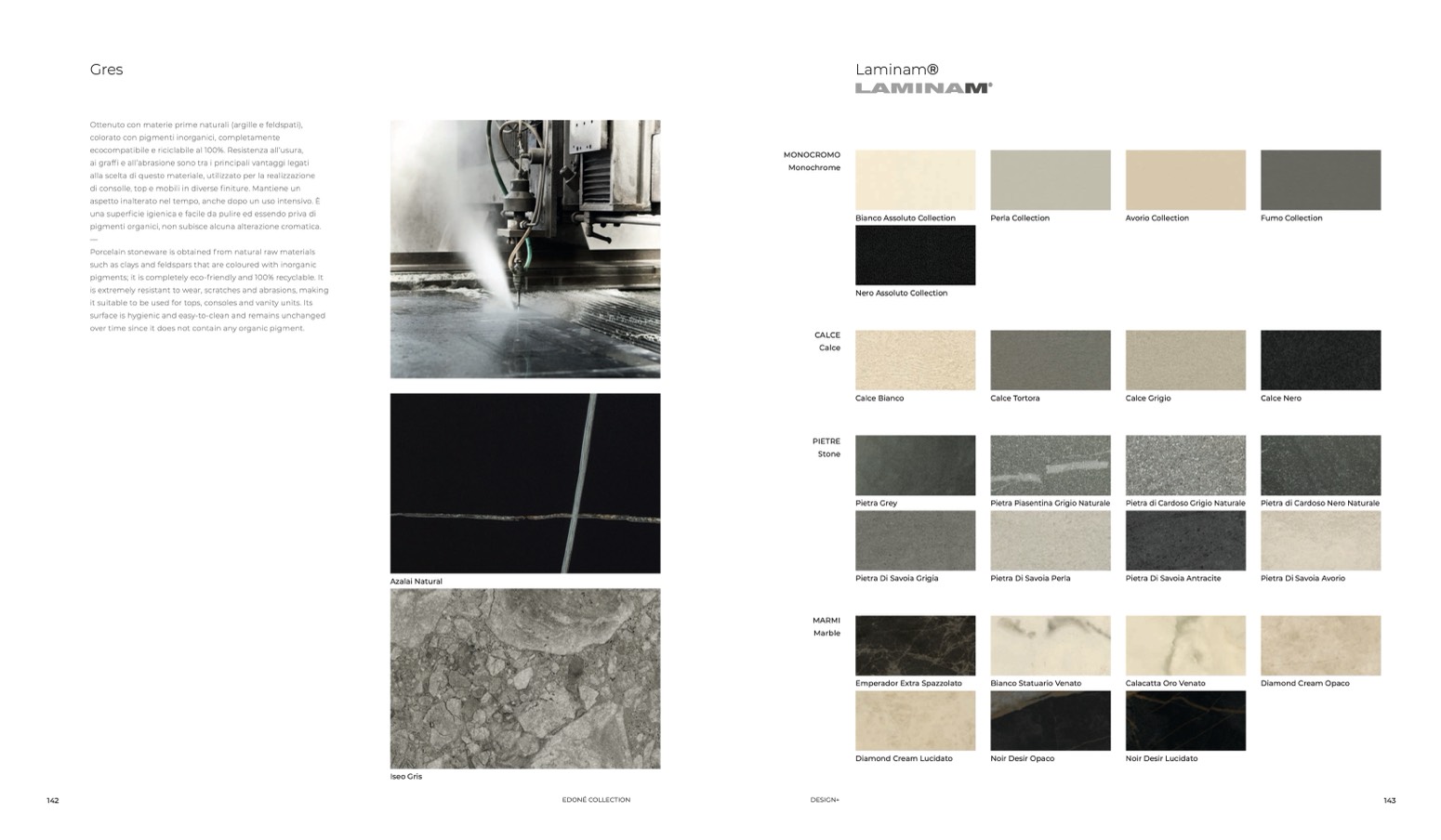 di consolle, top e mobili in diverse finiture. Mantiene un