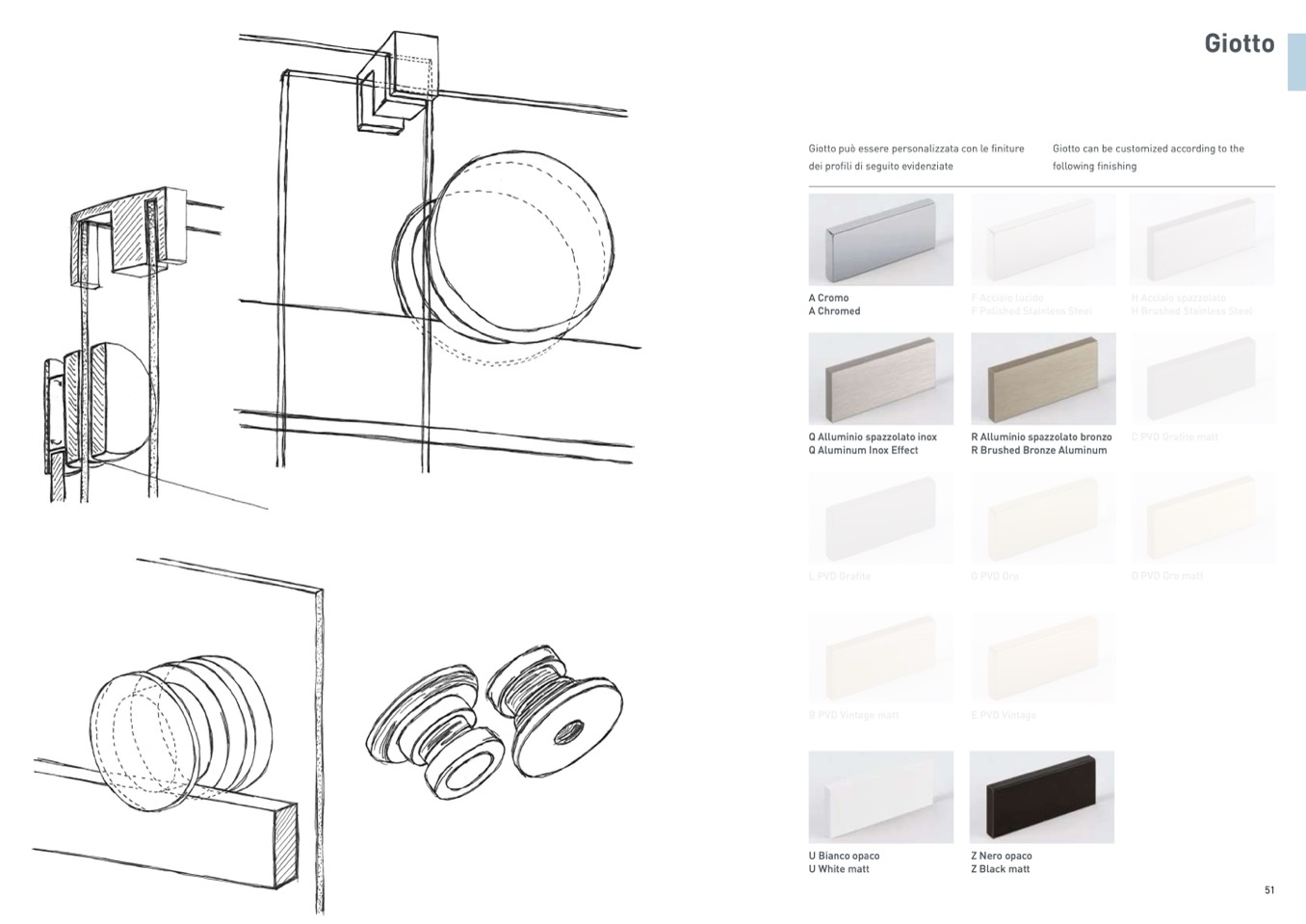 Giotto può essere personalizzata con le finiture