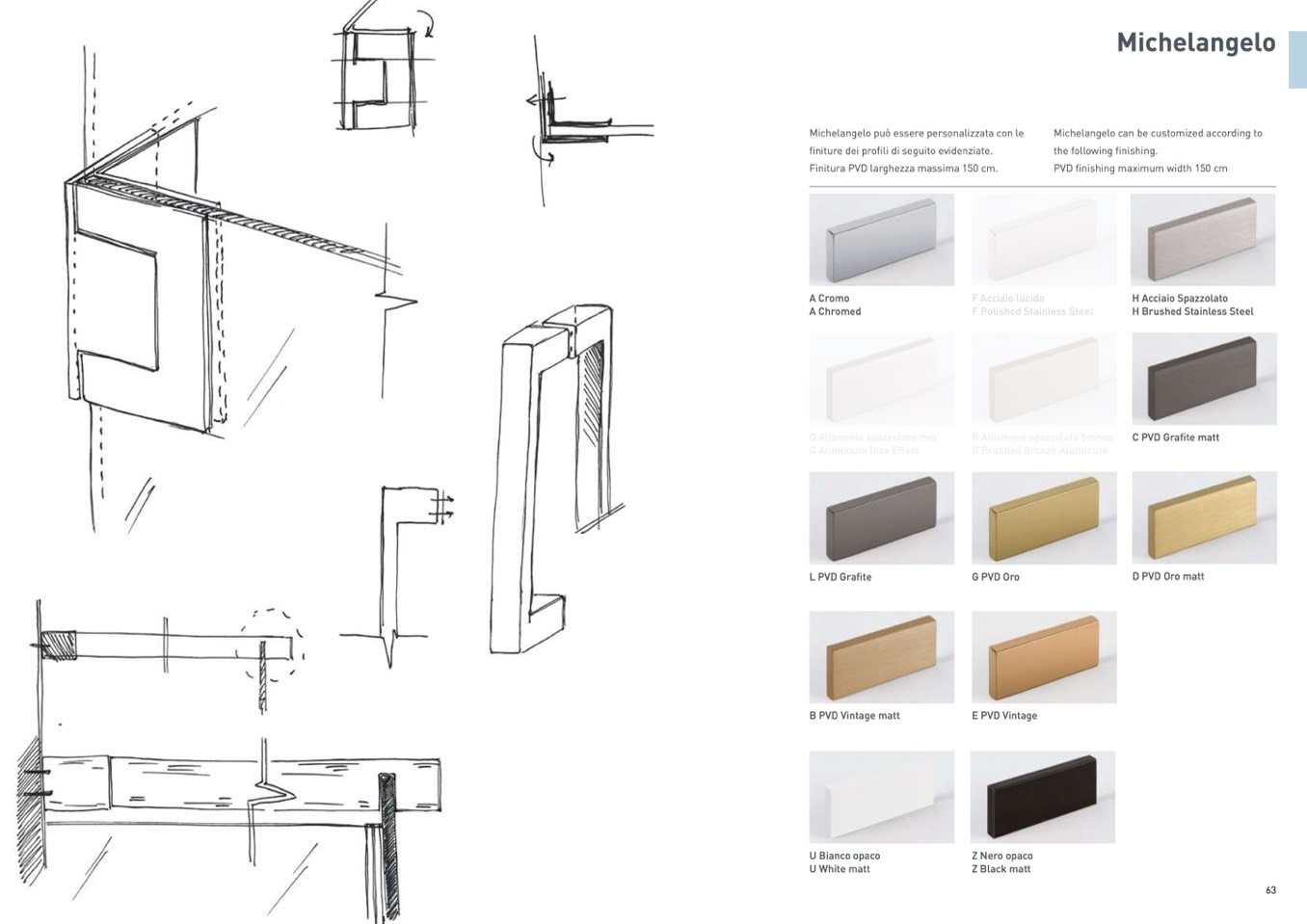finiture dei profili di seguito evidenziate.