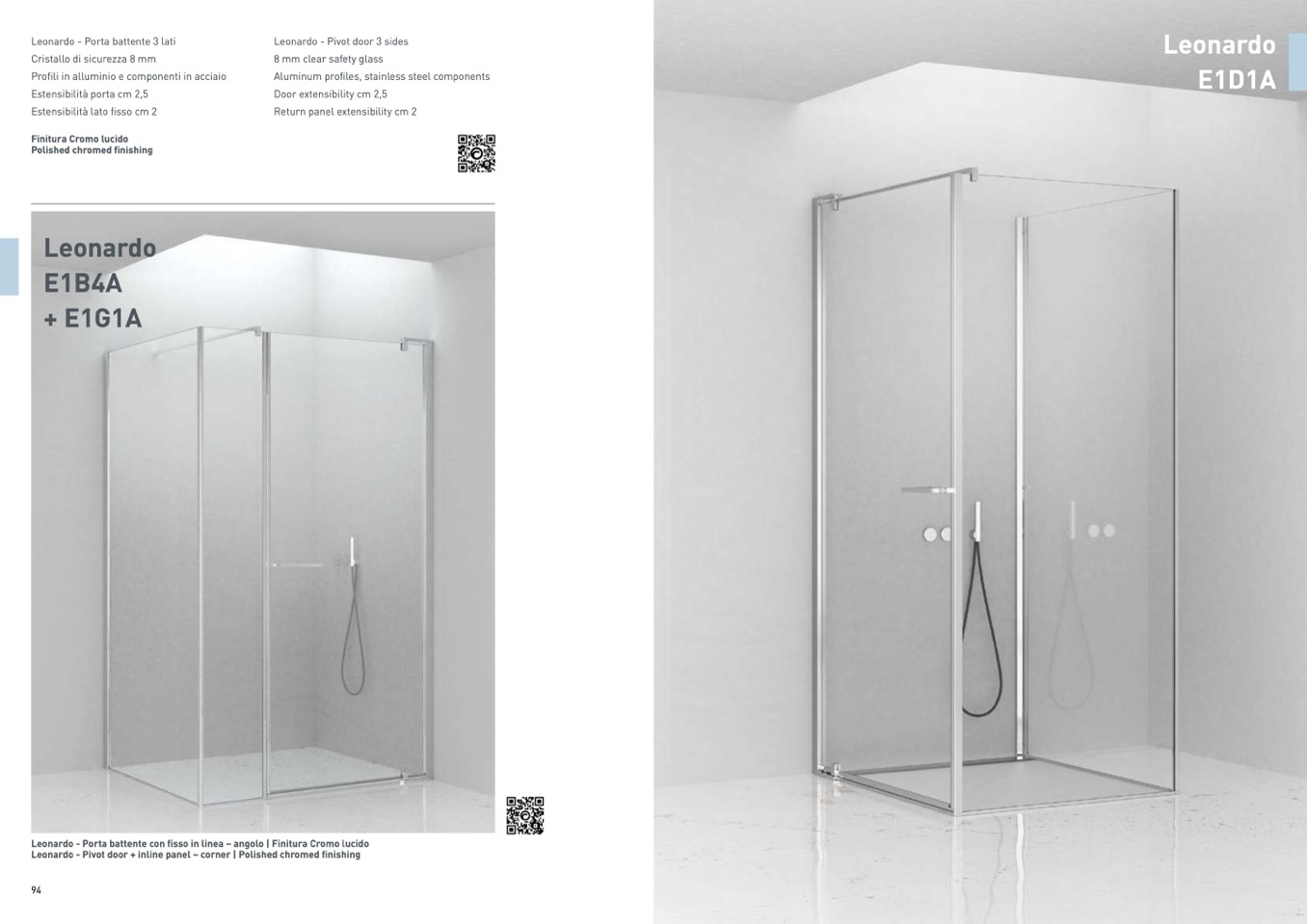 Leonardo - Porta battente con fisso in linea – angolo | Finitura Cromo lucido