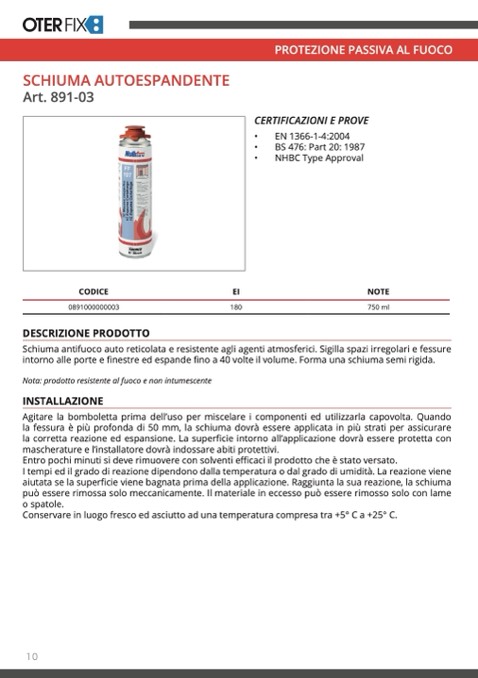 Schiuma antifuoco auto reticolata e resistente agli agenti atmosferici. Sigilla spazi irregolari e fessure