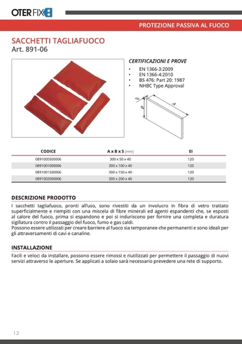 I sacchetti tagliafuoco, pronti all’uso, sono rivestiti da un involucro in fibra di vetro trattato