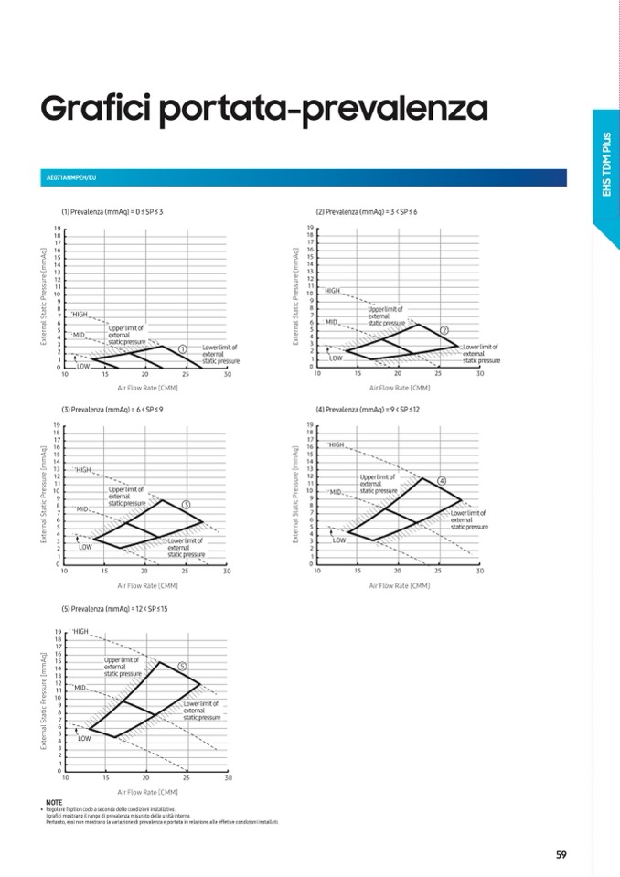 I grafici mostrano il range di prevalenza misurato delle unità interne.