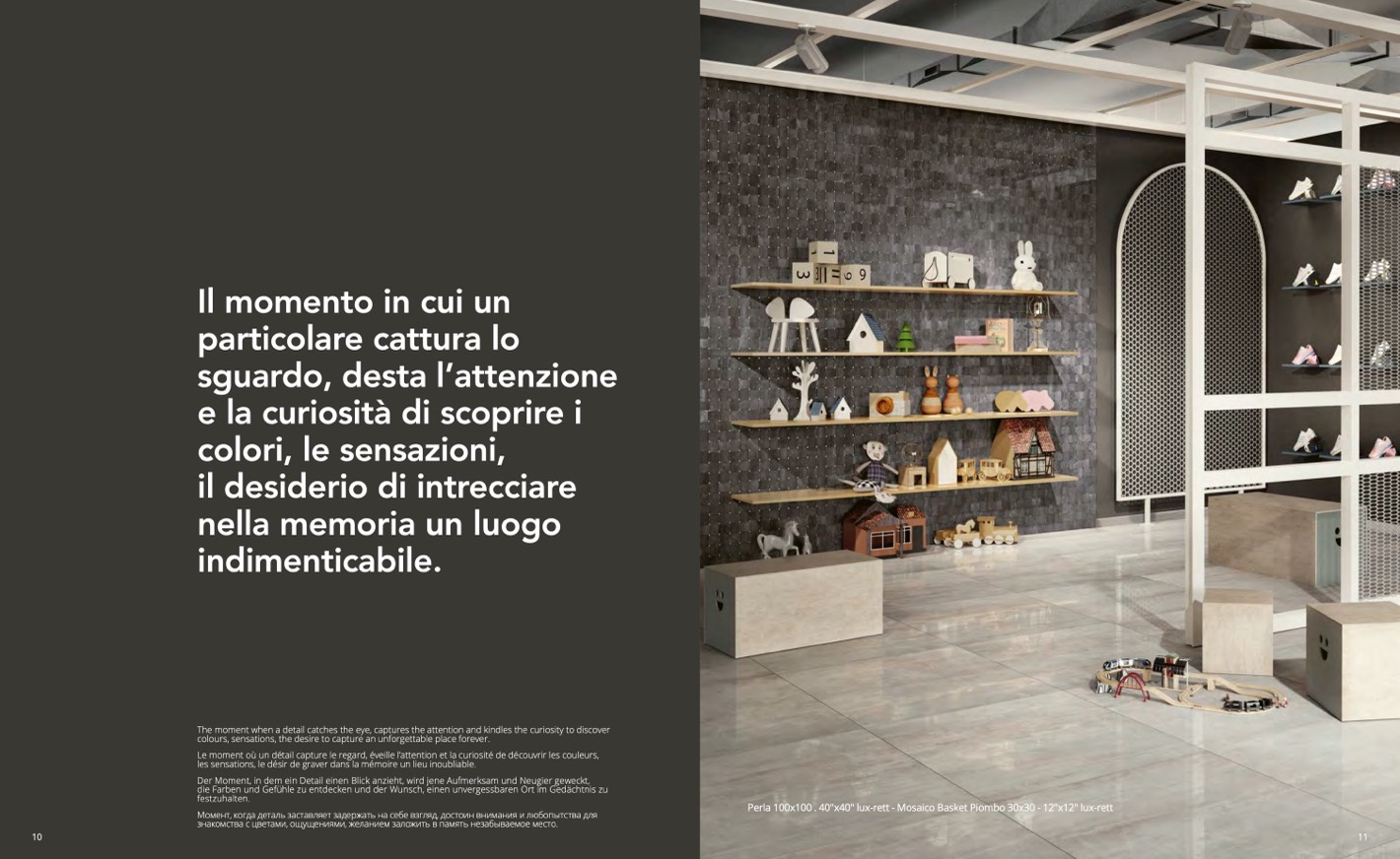Perla 100x100 . 40"x40" lux-rett - Mosaico Basket Piombo 30x30 - 12"x12" lux-rett