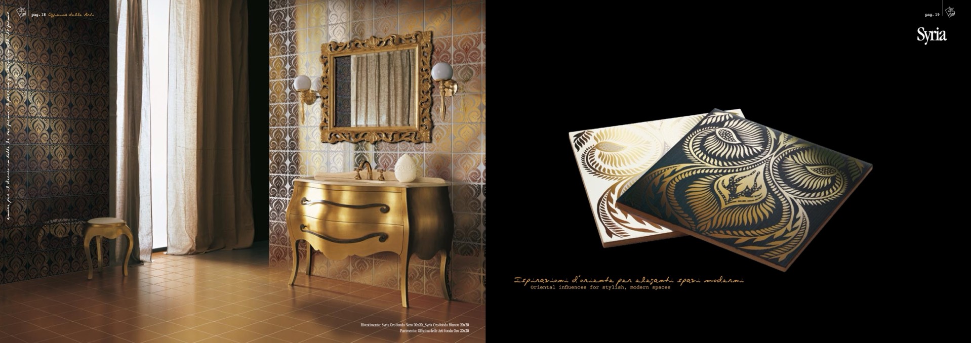 Rivestimento: Syria Oro fondo Nero 20x20_Syria Oro fondo Bianco 20x20