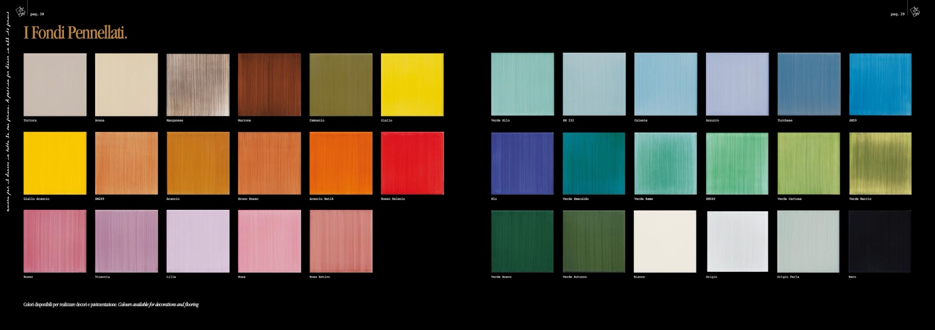 Colori disponibili per realizzare decori e pavimentazione. Colours available for decorations and flooring