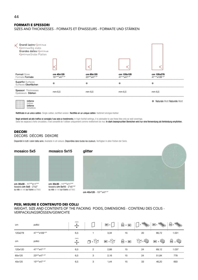 Negli ambienti ad alto traffico si consiglia l'uso solo a rivestimento. In high-footfall settings, it is advisable to use these tiles only as wall coverings.