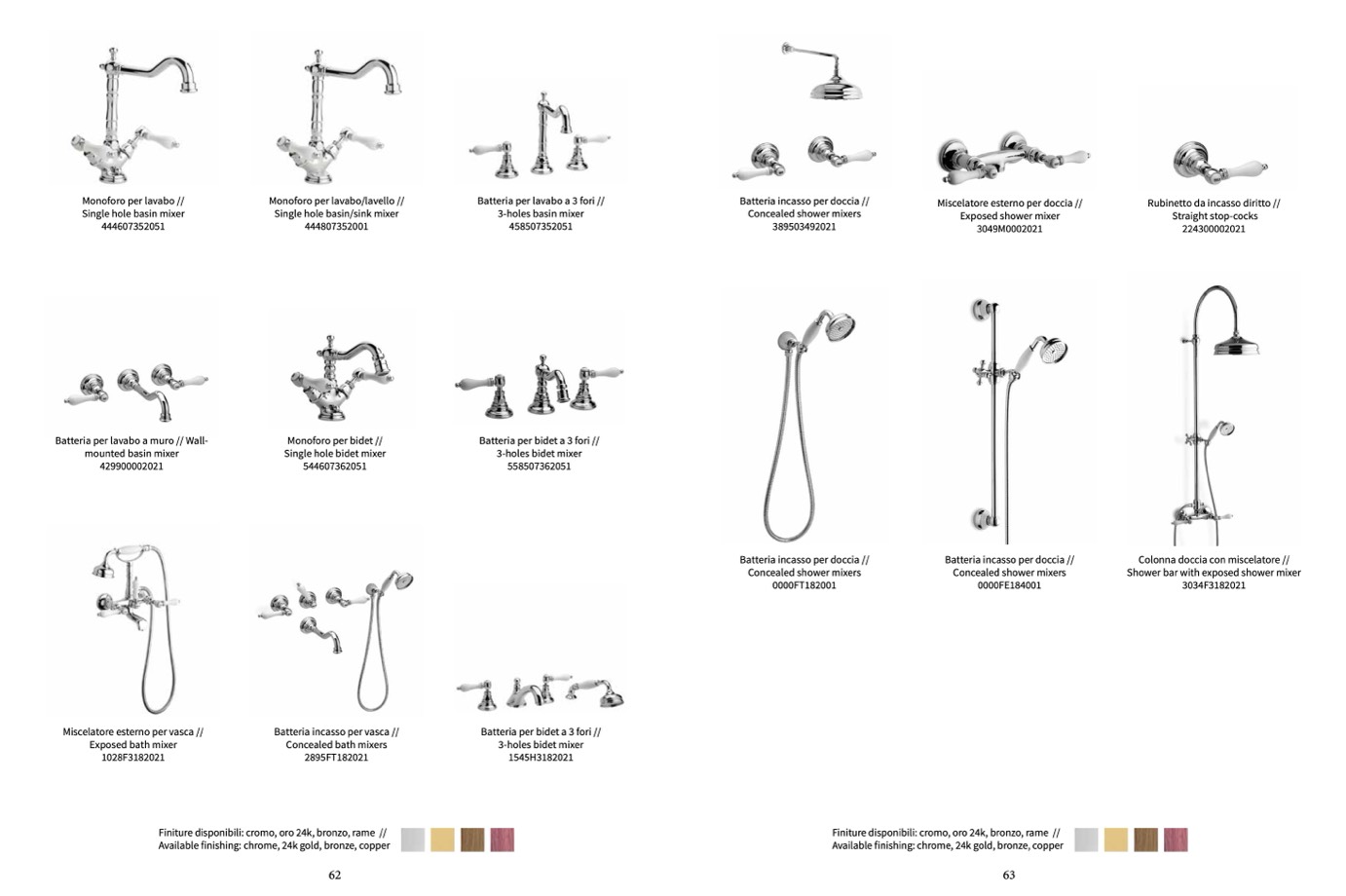 Finiture disponibili: cromo, oro 24k, bronzo, rame //