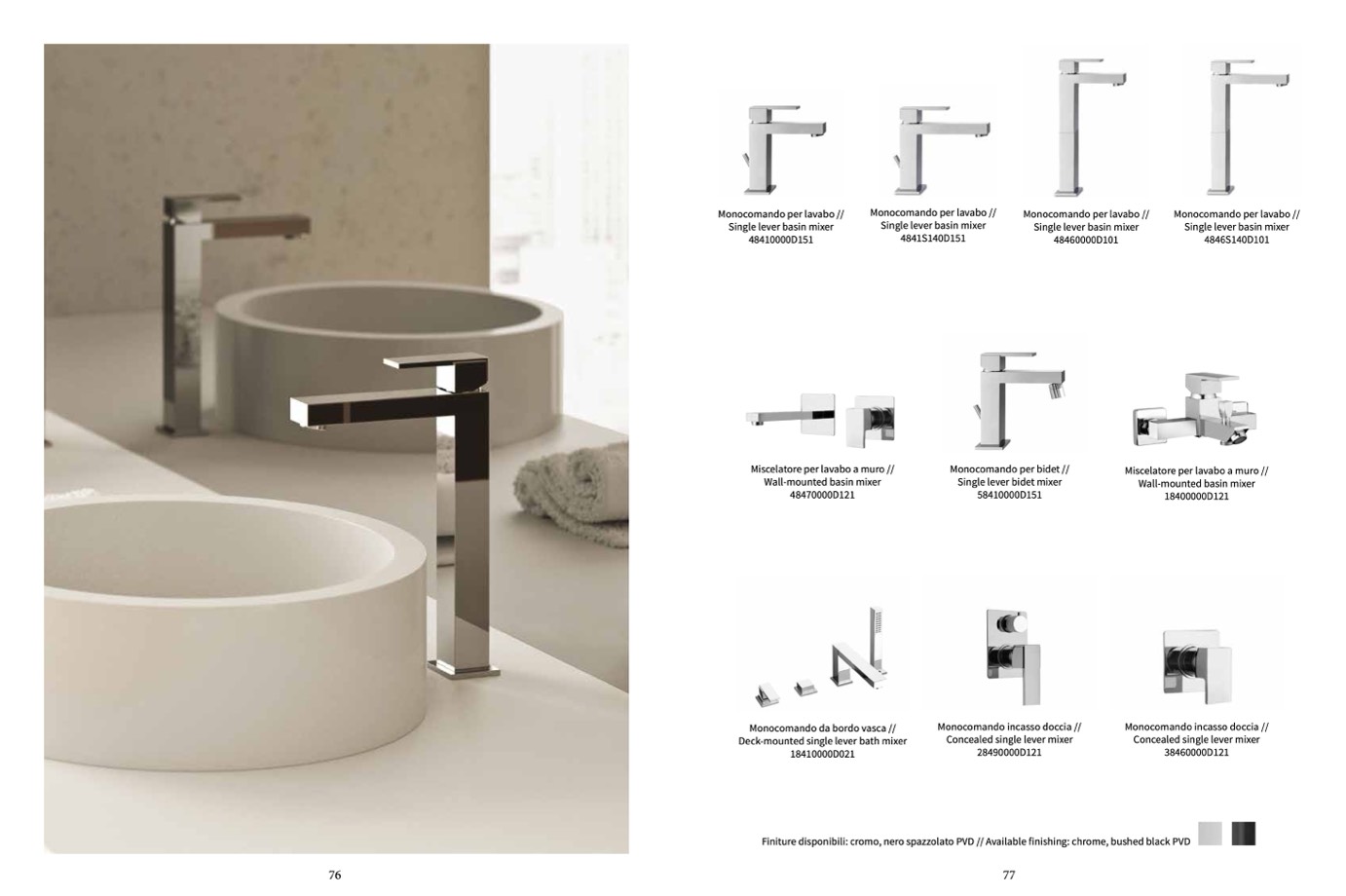 Finiture disponibili: cromo, nero spazzolato PVD // Available finishing: chrome, bushed black PVD