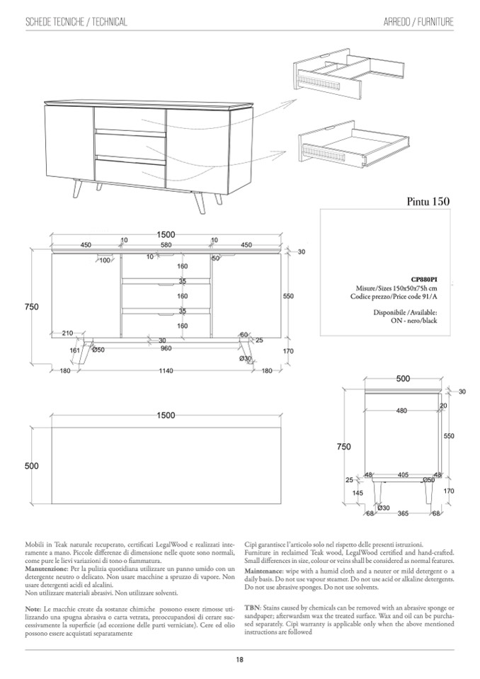 Mobili in Teak naturale recuperato, certificati LegalWood e realizzati inte-