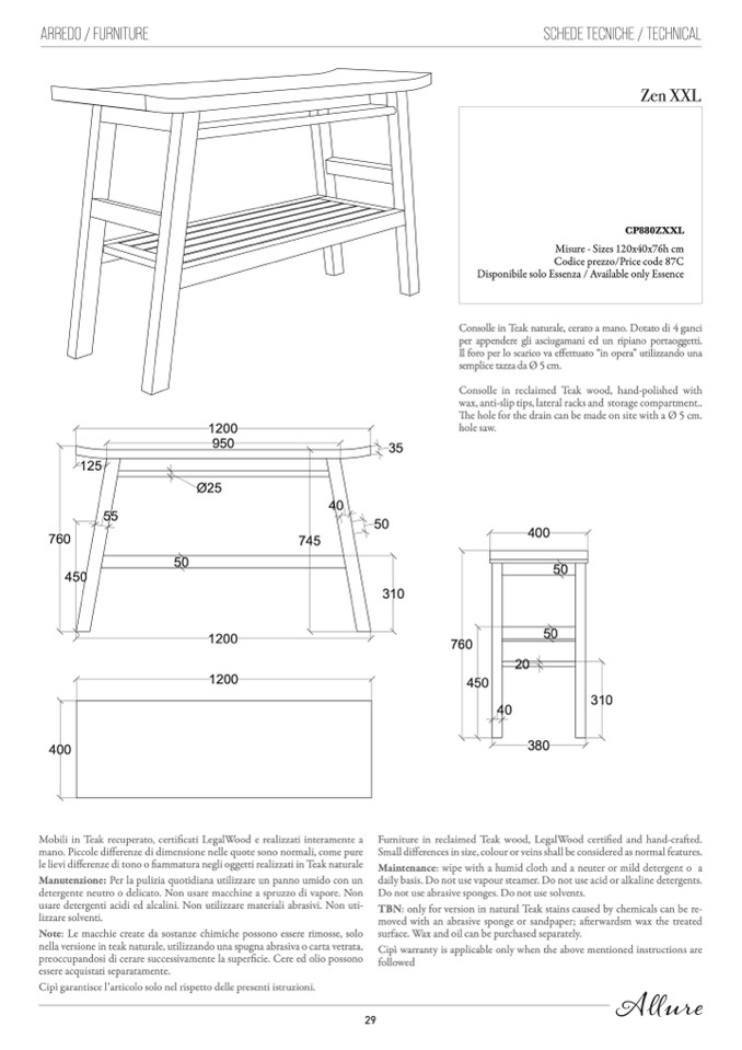 Misure - Sizes 120x40x76h cm