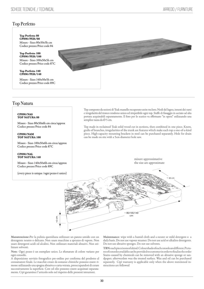 e irregolarità del tronco rendono unico ed irrepetibile ogni top. Staffe di fissaggio in acciaio ad alta