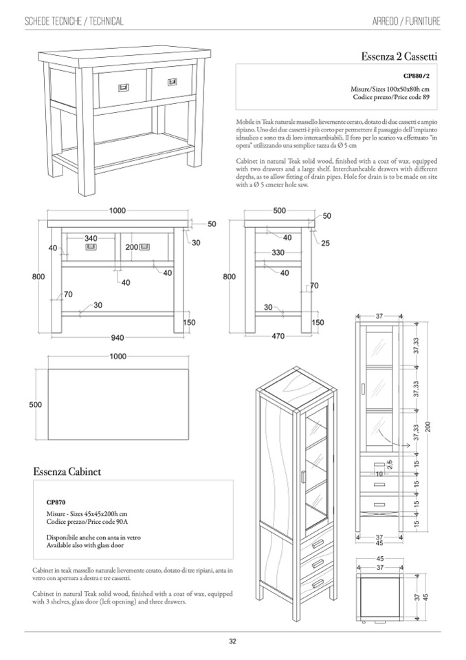 Cabinet in natural Teak solid wood, finished with a coat of wax, equipped