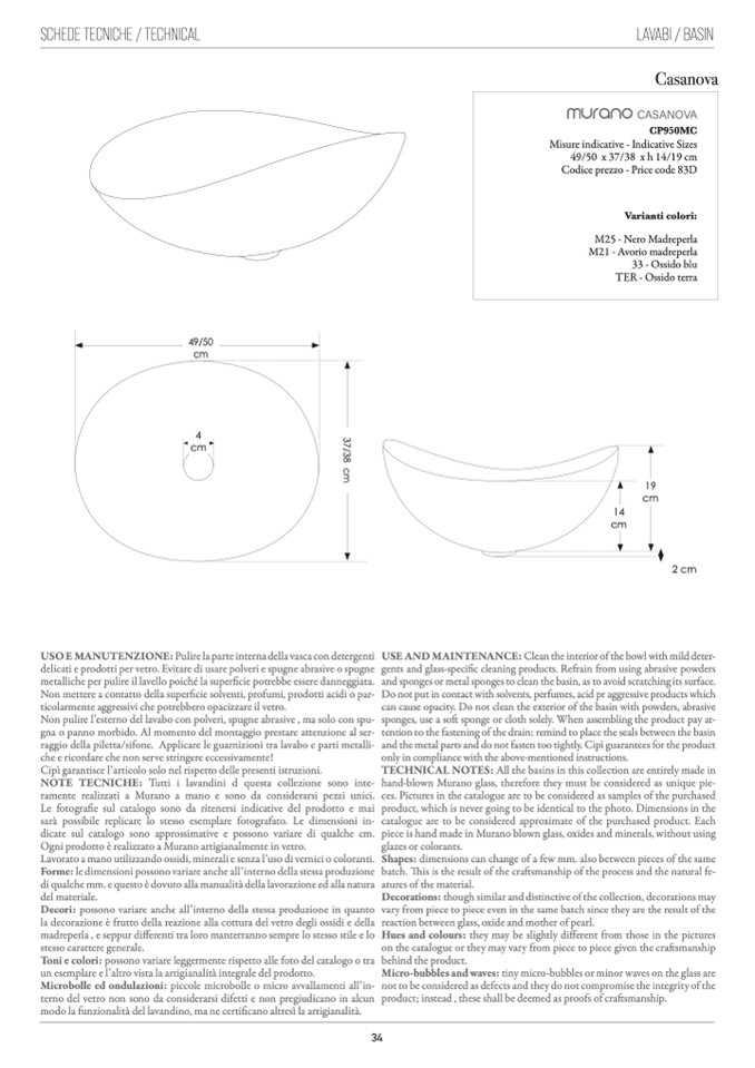 TECHNICAL NOTES: All the basins in this collection are entirely made in