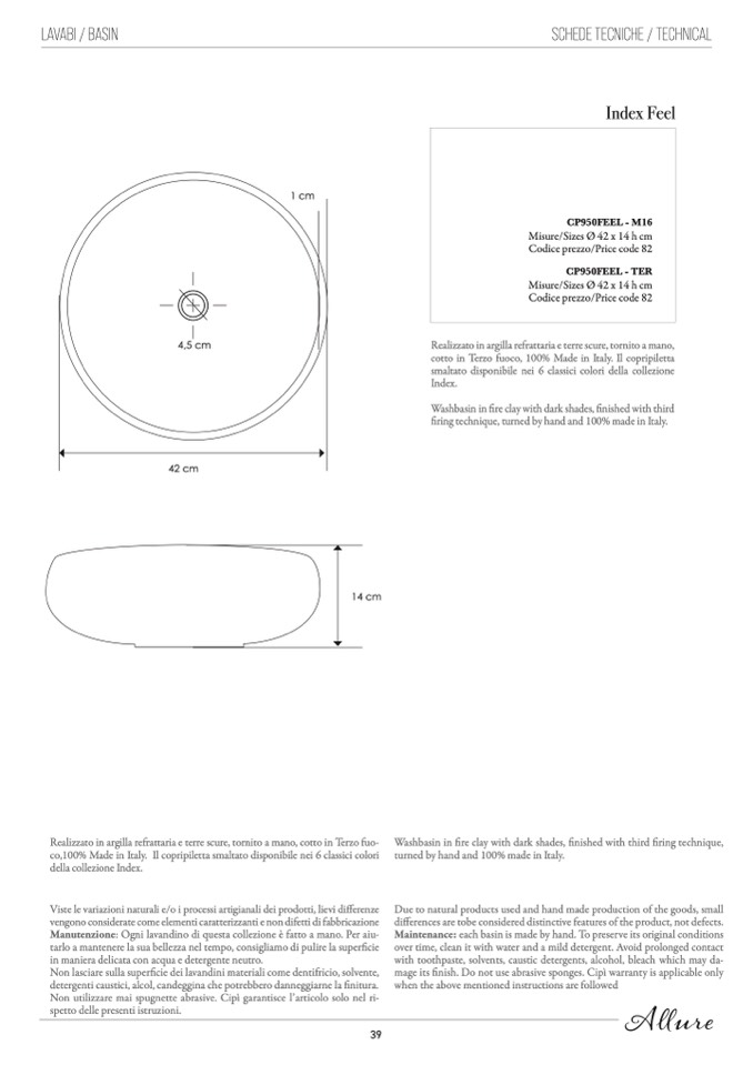 Manutenzione: Ogni lavandino di questa collezione è fatto a mano. Per aiu-