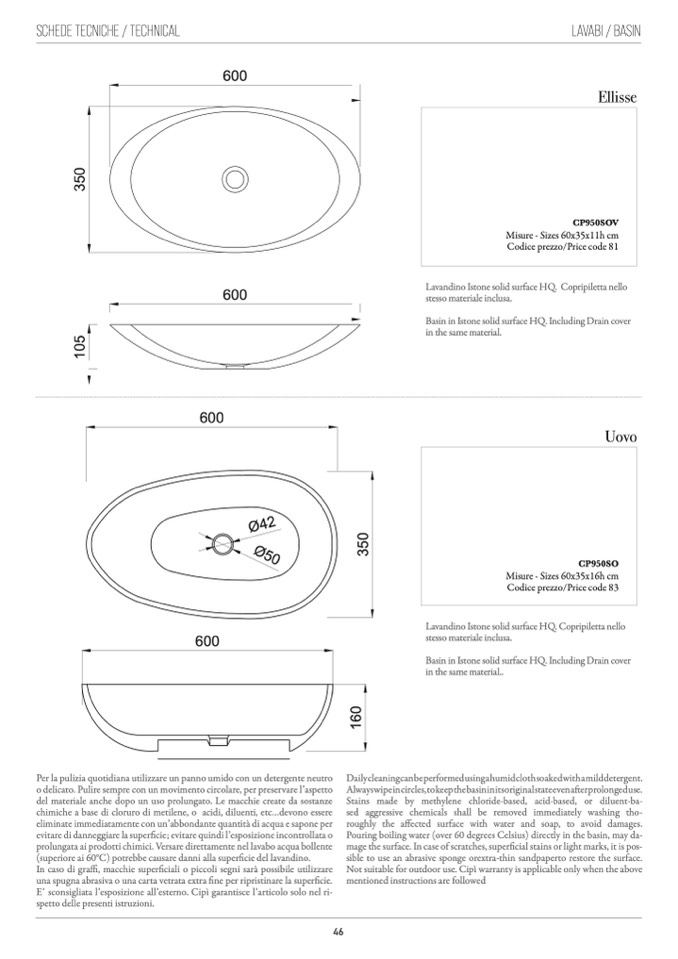 Lavandino Istone solid surface HQ. Copripiletta nello