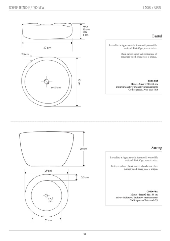 Misure - Sizes Ø 40x10h cm