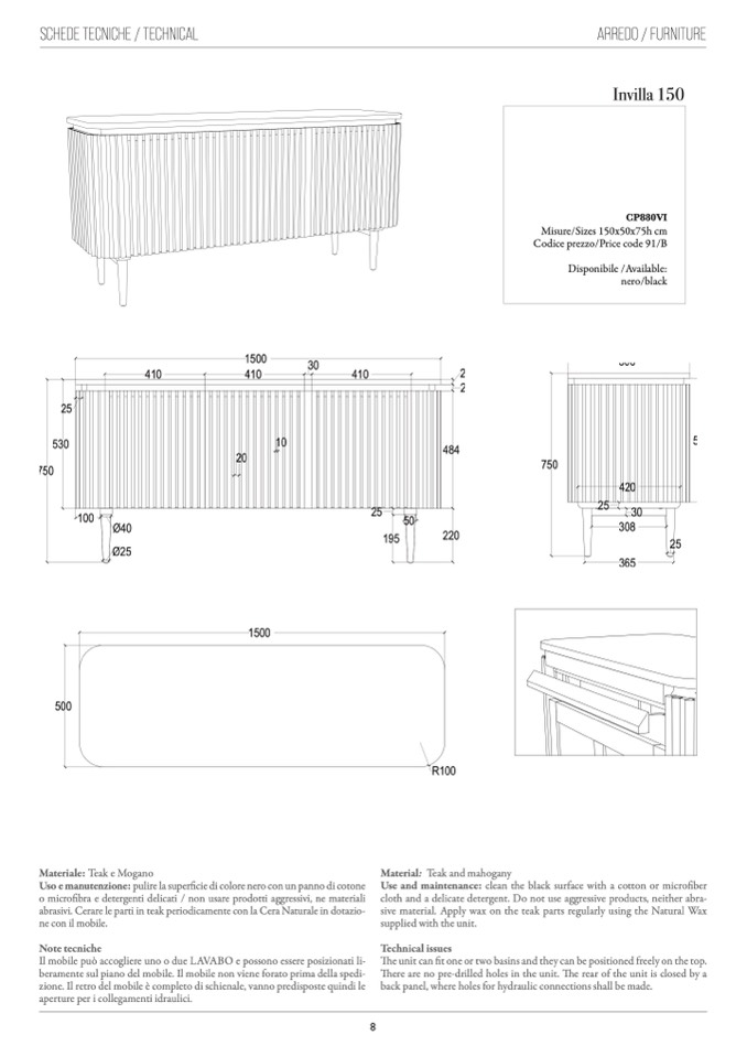 Il mobile può accogliere uno o due LAVABO e possono essere posizionati li-