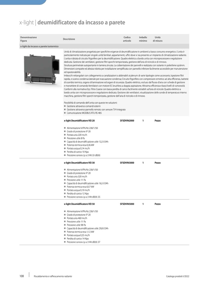 L'unita e dotata di circuito frigorifero per la deumidificazione. Quadro elettrico a bordo unita con microprocessore e regolazione