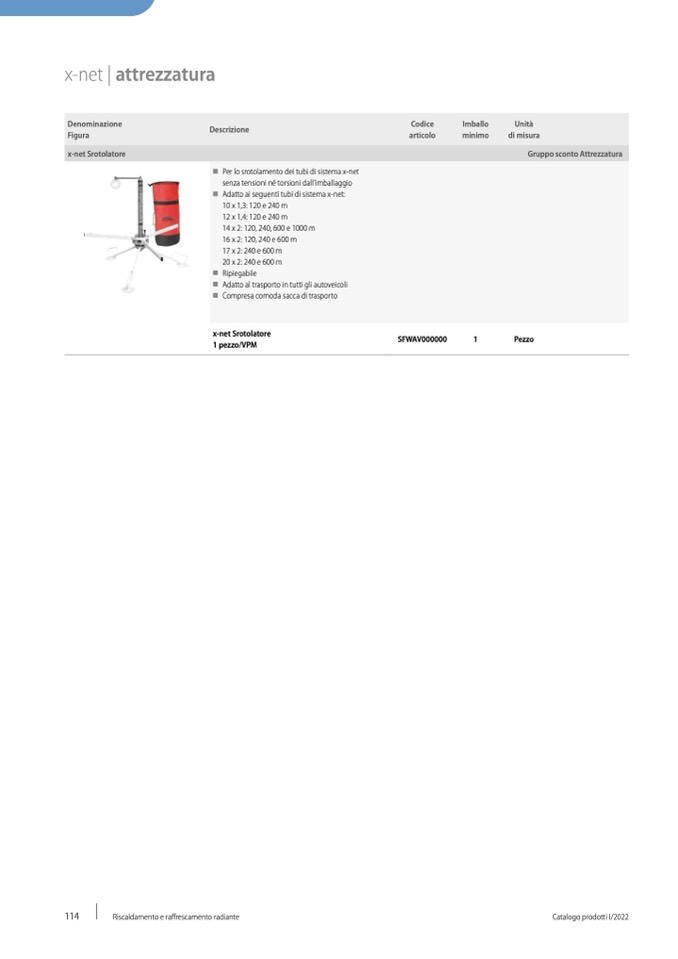 Per lo srotolamento dei tubi di sistema x-net