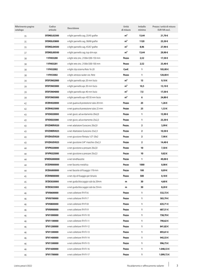 Listino prezzi I/2022