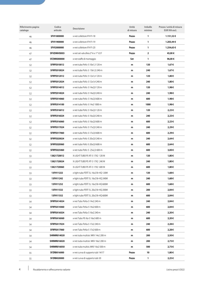 Listino prezzi I/2022
