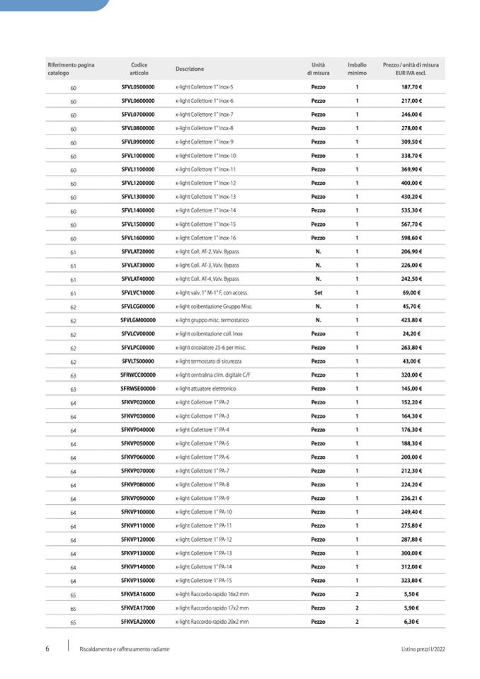 Listino prezzi I/2022