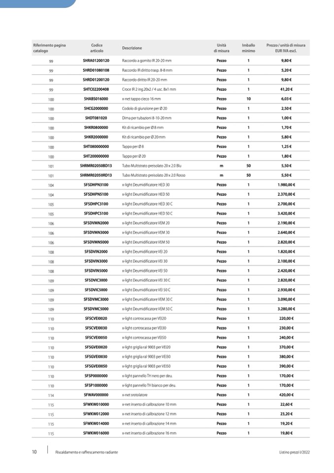 Listino prezzi I/2022
