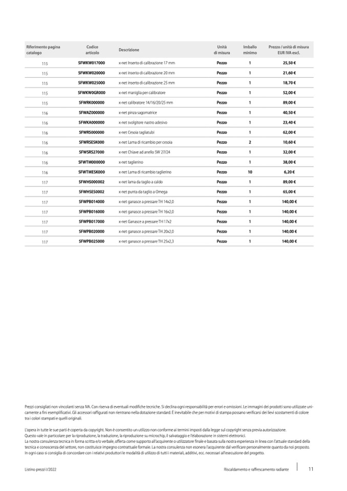 Prezzi consigliati non vincolanti senza IVA. Con riserva di eventuali modifiche tecniche. Si declina ogni responsabilità per errori e omissioni. Le immagini dei prodotti sono utilizzate uni-