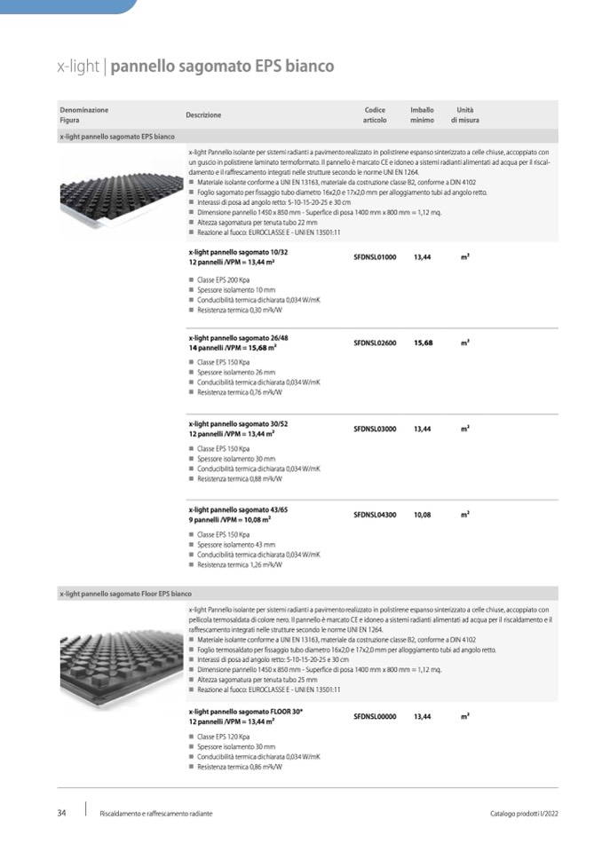 x-light Pannello isolante per sistemi radianti a pavimento realizzato in polistirene espanso sinterizzato a celle chiuse, accoppiato con