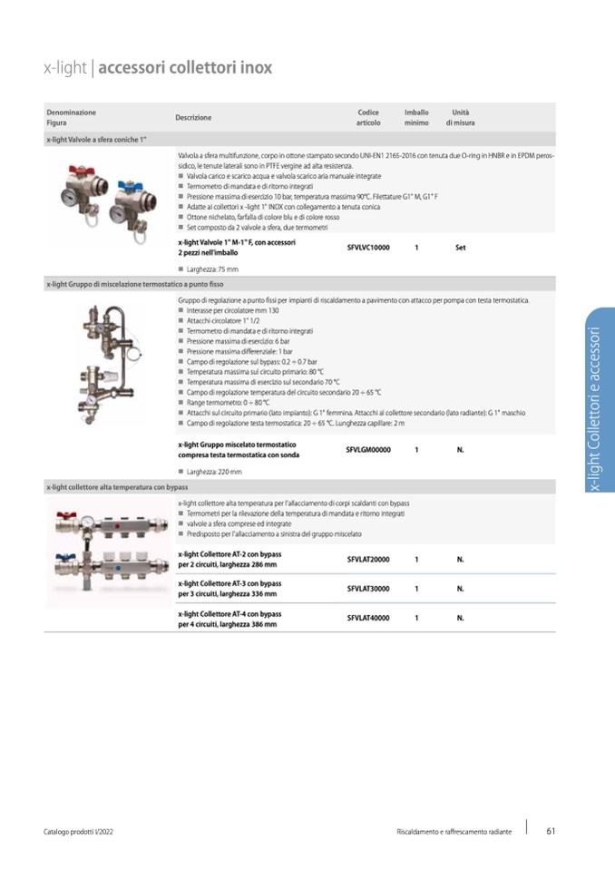 x-light collettore alta temperatura per l'allacciamento di corpi scaldanti con bypass