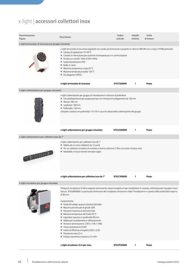 lato art. SFVLGM00000. Le particolari dimensioni del circolatore consentono infatti l'installazione in cassetta della profondità massima