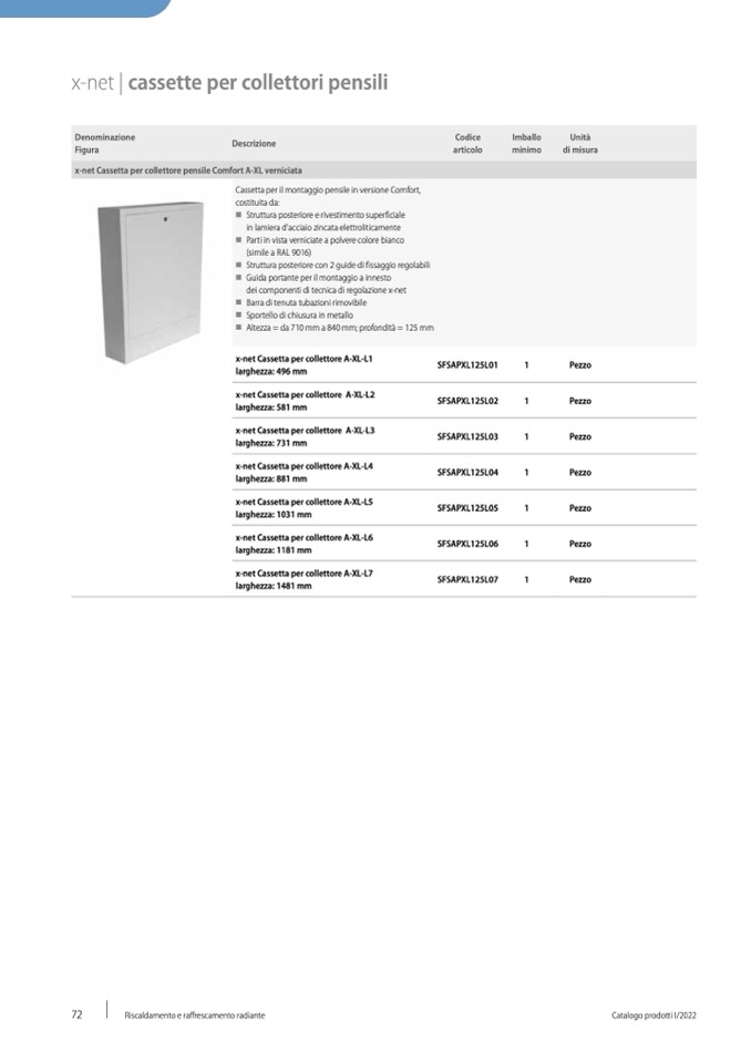 x-net Cassetta per collettore pensile Comfort A-XL verniciata