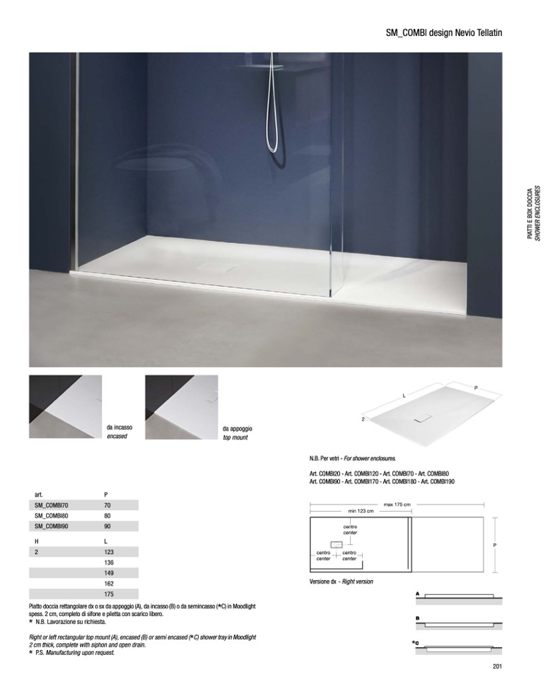 Piattodocciarettangolaredxosxdaappoggio(A),daincasso(B)odasemincasso( C)inMoodlight