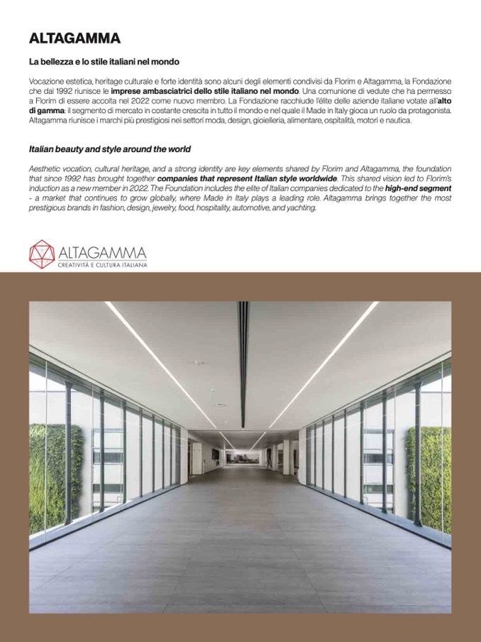 that since 1992 has brought together companies that represent Italian style worldwide. This shared vision led to Florim’s