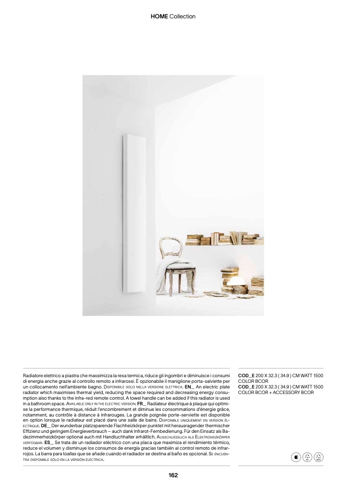 un collocamento nell’ambiente bagno. Disponibile solo nella versione elettrica. EN_ An electric plate