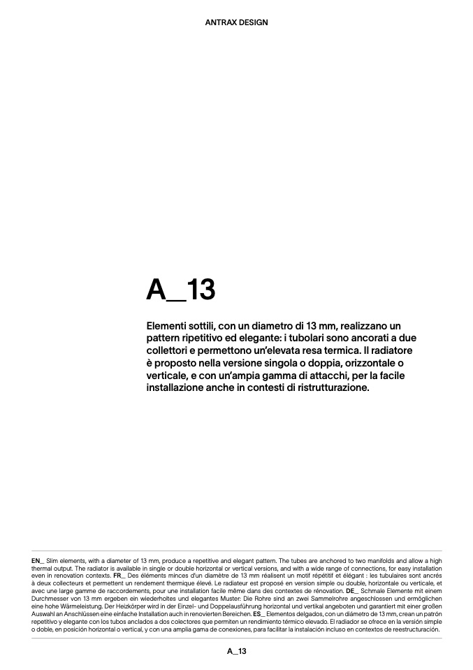 repetitivo y elegante con los tubos anclados a dos colectores que permiten un rendimiento térmico elevado. El radiador se ofrece en la versión simple
