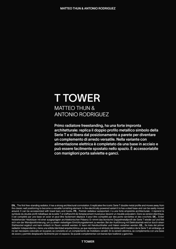 EN_ The first free-standing radiator, it has a strong architectural connotation. It replicates the iconic Serie T double metal profile and moves away from