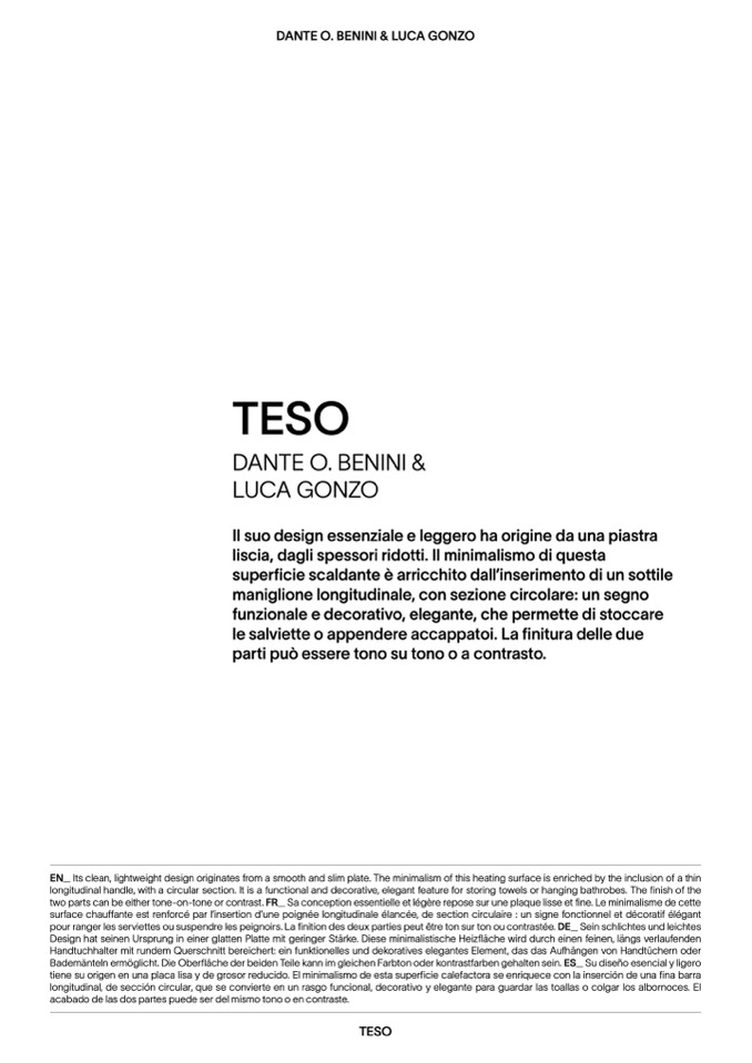 surface chauffante est renforcé par l’insertion d’une poignée longitudinale élancée, de section circulaire : un signe fonctionnel et décoratif élégant