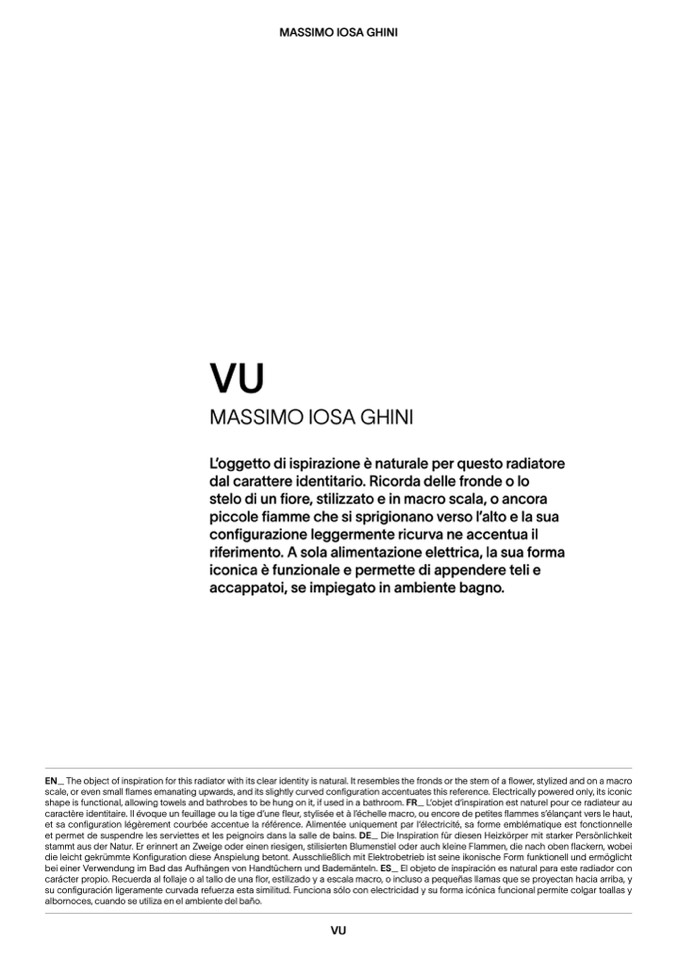 EN_ The object of inspiration for this radiator with its clear identity is natural. It resembles the fronds or the stem of a flower, stylized and on a macro