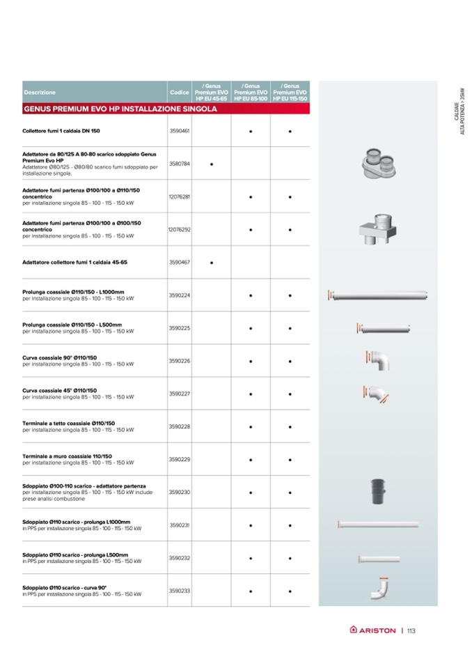 per installazione singola 85 - 100 - 115 - 150 kW include