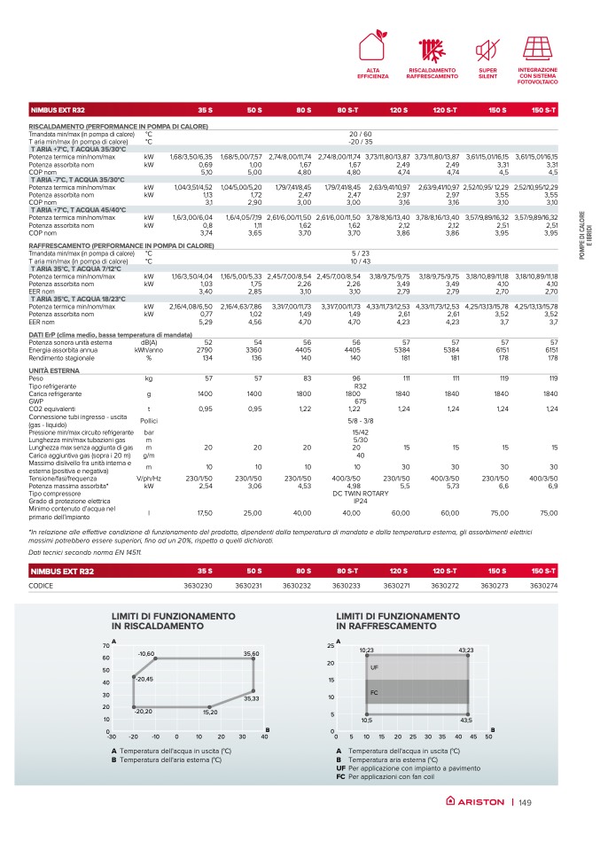 *In relazione alle effettive condizione di funzionamento del prodotto, dipendenti dalla temperatura di mandata e dalla temperatura esterna, gli assorbimenti elettrici