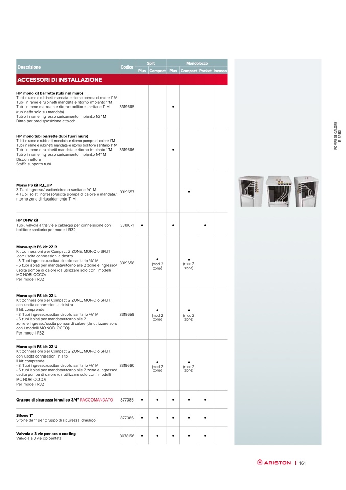 Kit connessioni per Compact 2 ZONE, MONO o SPLIT,