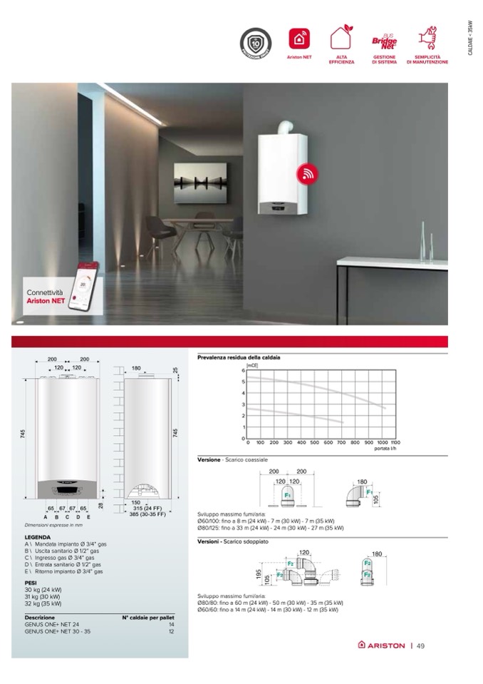 Ø60/60: fino a 14 m (24 kW) - 14 m (30 kW) - 12 m (35 kW)