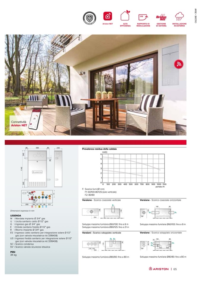 Sviluppo massimo fumi/aria Ø60/100: fino a 8 m