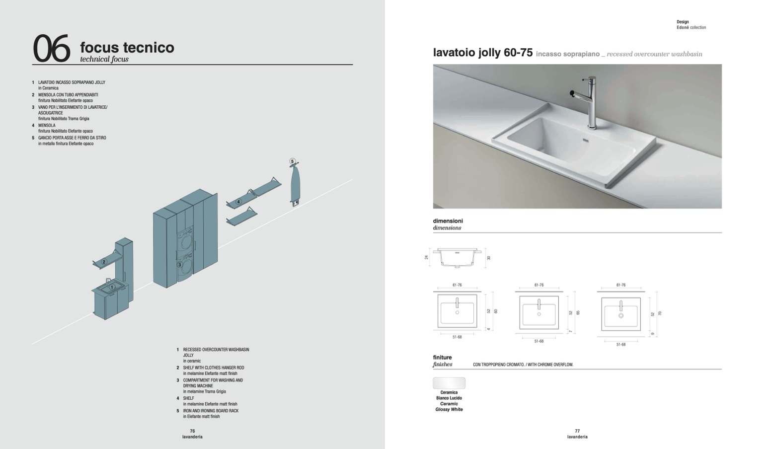 1 LAVATOIO INCASSO SOPRAPIANO JOLLY